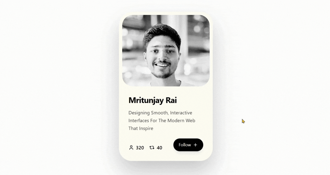 A modern animated profile card combining motion design, hover expansion, and sound-enhanced interaction.